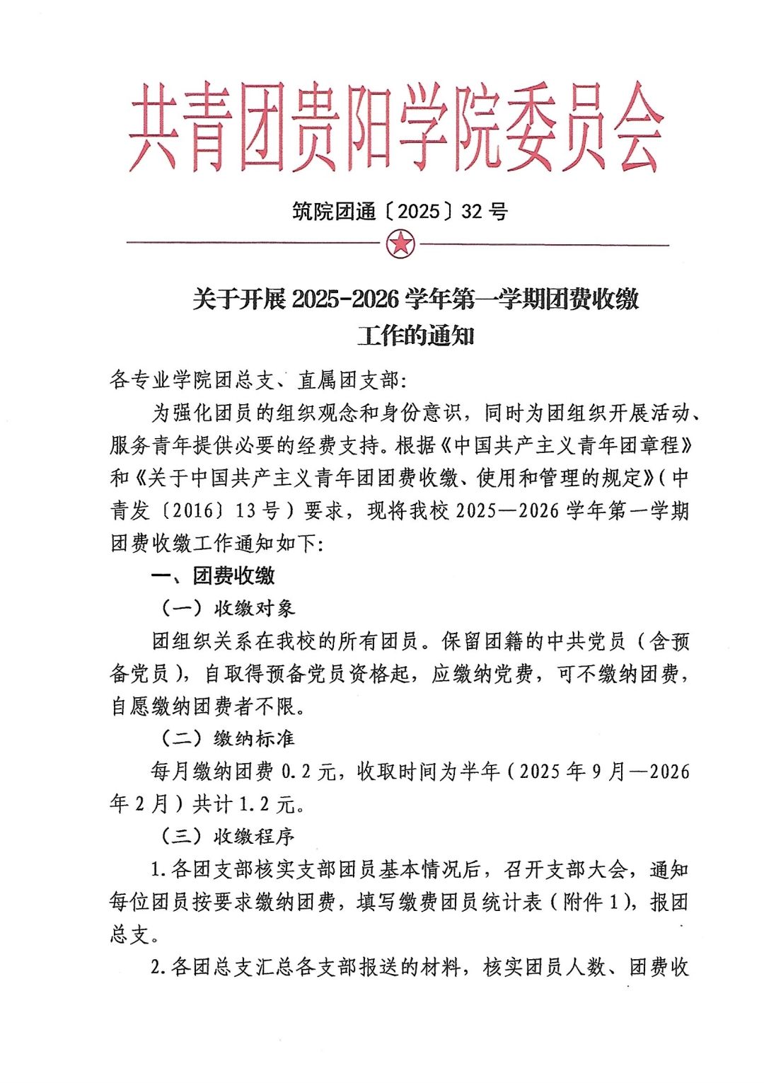关于开展2025-2026学年第一学期团费...