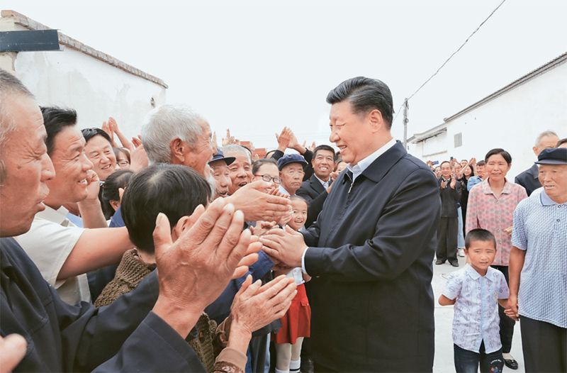 2019年8月19日至22日,中共中央总书记、国家主席、中央军委主席习近平在甘肃考察。这是21日上午,习近平在武威市古浪县黄花滩生态移民区富民新村同村民亲切交谈。