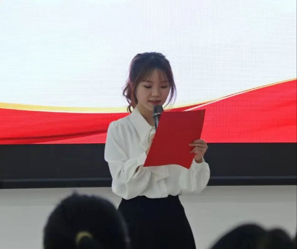 马克思主义学院2023级吴梅同学代表新团员发言。她回顾了自己从递交入团申请书到成为正式团员的心路历程,表示将以此为新起点,把个人理想同民族复兴伟业紧密结合,用专业所学服务基层、服务人民。